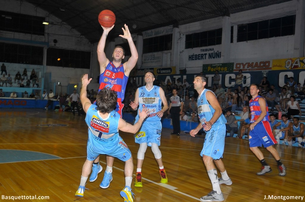 El partido se mantuvo parejo, con pequeñas ventajas para el local, y varias oportunidades para pasar desperdiciadas por el azulgrana. Un triple de Semiglia empató el juego restando poco menos de cuatro minutos, y pasó a ganar con libres de Varela un minuto después. Apuros en la ofensiva de Cordón le dieron cinco de renta a la visita, pero un triple de Pintos mantuvo la esperanza local. Giano y Cantón desde la línea fácil sentenciaron el juego, victoria de Unión Atlética 100-94 para igualar la línea de Olimpia a falta de cuatro partidos para el final de la Permanencia.