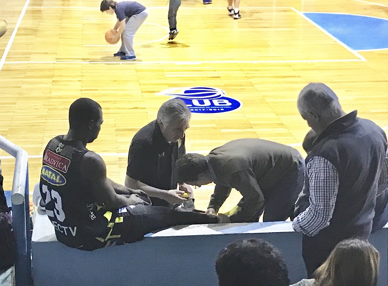 El extranjero del equipo de La Unión dobló su tobillo en el primer cuarto y salió muy dolorido. A pesar de esto, volvió a la cancha minutos después. Lo distinto fue que en el entretiempo Marshall fue revisado y vendado por el médico de Trouville, Dr. Daniel Zarrillo. Si bien esta es una práctica común y hasta obligatoria en ciertos casos para los profesionales, es algo que nunca está demás destacar.