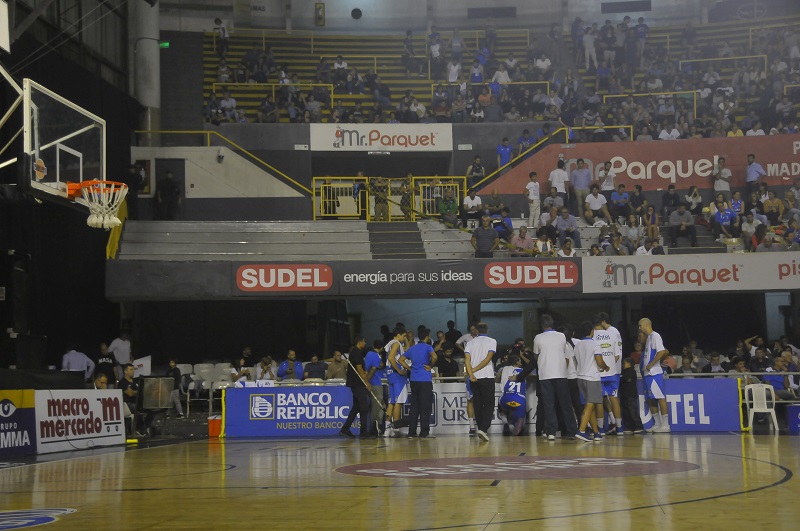 Por temas de seguridad en todos los partidos que llevamos disputados de los playoffs, se coloca un pulmón en la tribuna de la calle Minas, para dejar un espacio libre entre la parcialidad que se aloja en dicha grada y el banco de suplentes de su rival. En este caso, la hinchada de Malvìn se ubicaba en esa tribuna, por lo tanto la separación tenía que ser contra el banco de Hebraica. Sin embargo, por un error de logistica de la seguridad, el sector que quedó vacio fue el que daba a espaldas del banco playero.
