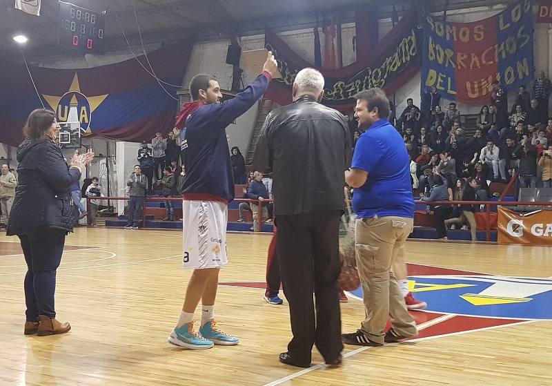 Gastón Semiglia también forma parte del distinto. En este caso por el reconocimiento de Unión Atlética en la previa. Se le entregó una plaqueta al jugador por cumplir 100 partidos con la camiseta azulgrana y pasar los 2000 puntos en la institución de Nuevo Malvín. En un basquet donde se dan cambios constante, lo de Semiglia no deja de ser algo distinto. Al recibir el homenaje, con su mano se tocó el corazón de cara a la tribuna de la UA.