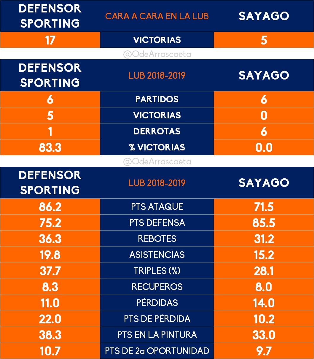 Para Defensor Sporting una vez más la clave pasa por su funcionamiento colectivo, los dirigidos por Ponce encuentran en distintos momentos del partido, distintos jugadores para tomar las responsabilidades. Cuenta con buenos arranques de Johnson y Henry, a lo que se han sumado Acosta e Iglesias. El equipo de Perdomo aún está insertando a Williams en las ofensivas y se espera que ya esté más acoplado. El empuje de Giano y la lucha de Crews han sido de lo poco destacable de Sayago, necesita más de “Lalo” Fernández y del extranjero Kirby que mostró poquísimo.
