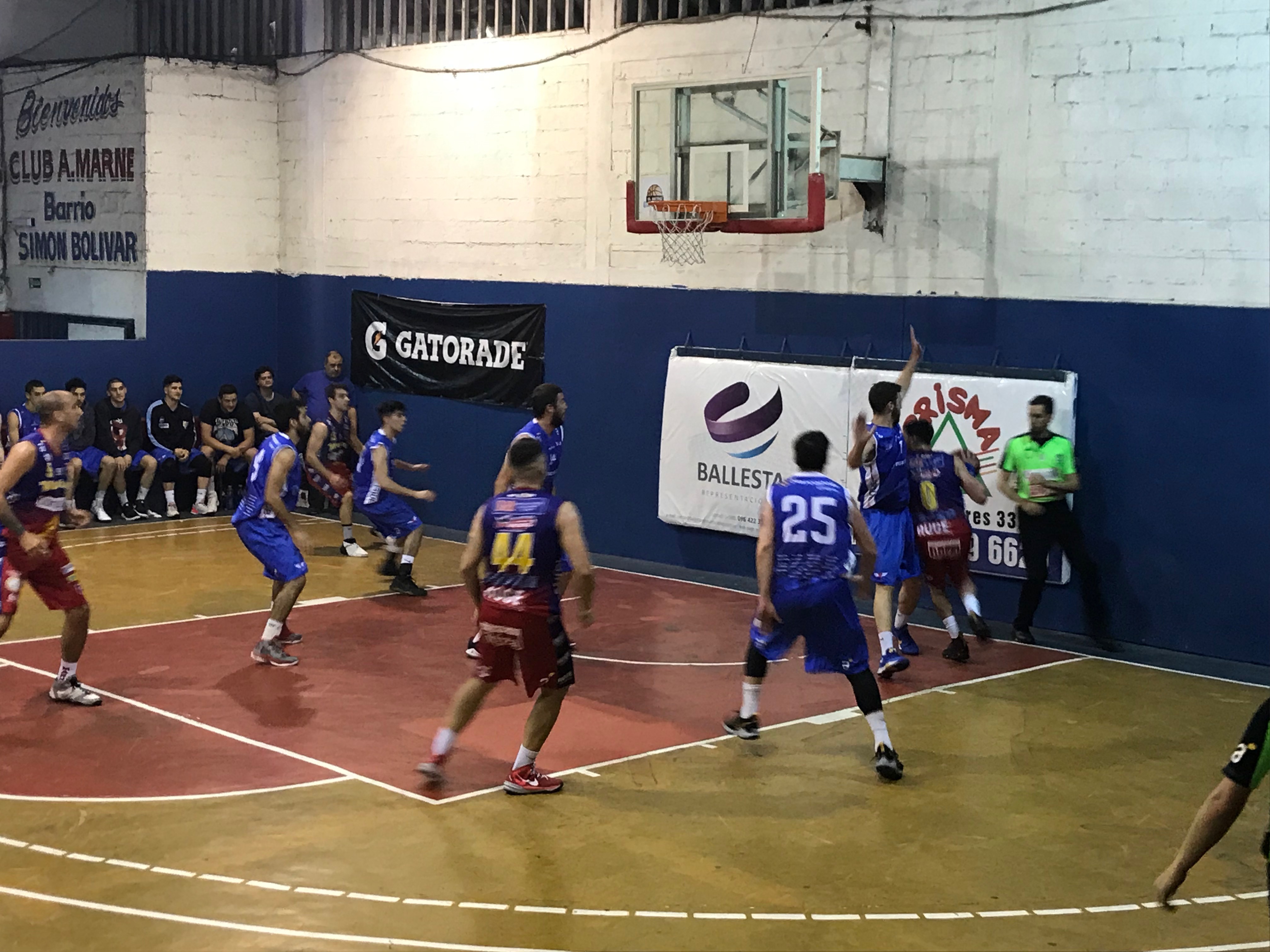 Noche de clásico en el barrio Simón Bolívar, el local recibía a Yale por la última fecha de la primera rueda. El primer cuarto fue mejor para él local, que llegó a sacar 10 puntos con Pochelu jugando los picks para asistir, pero el yalense reaccionó encontrando a Ledanis en la pintura contraria. Un buen ingreso de Emiliano Timote devolvió ventaja al tifón que se fue 24-17 al primer descanso. Buenos minutos de Trinidad ampliaron la renta de Marne pero a partir de allí Martínez generó y De León fue más agresivo y la zona planteada por Arhancet dejó casi sin gol a su rival que se puso a uno. Arambillete volvió bien, para romper y sacar faltas que le permitieron desde la línea poner el 39-36 con que el tifón se fue al entretiempo.