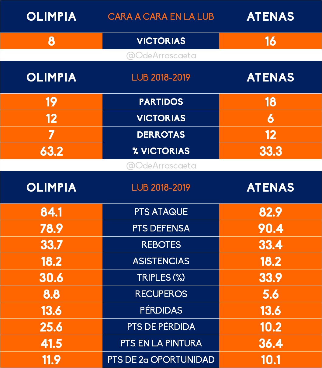 Olimpia viene de una semana dura. Perdió un partido con mucha polémica frente a Defensor y posteriormente cayó en su visita a Urunday. Atenas, que nuevamente contará solamente con una ficha extranjera, ha tenido una semana de noticias buenas y malas. Perdió frente a Welcome en un partido que por momentos tuvo controlado y salió el fallo pendiente con la quita de dos puntos que lo deja comprometido en la zona baja de la tabla. Pero no todas son negras para los de Palermo que tendrán la vuelta de Alex López luego de un mes producto del golpe que sufrió en el partido frente Aguada. Una gran noticia para Frydman que recuperar una de sus figuras.