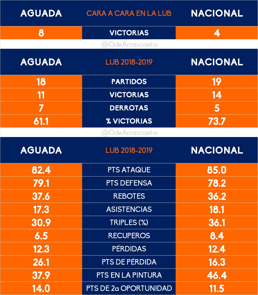 Es el partido mas atractivo de la noche. Aguada, que sigue en la búsqueda de técnico, continuará con Cortizas al frente del equipo. Viene de ganarle de forma solida a Verdirrojo y Sayago mostrando una mejoría considerable en su volumen de juego. El aguatero llega al partido con equipo completo. Por el otro lado, Nacional viene de ganarle a Biguá en final cerrado. Los dirigidos por Gonzalo Fernández, tendrán nuevamente la baja de Esteban Batista por lesión.