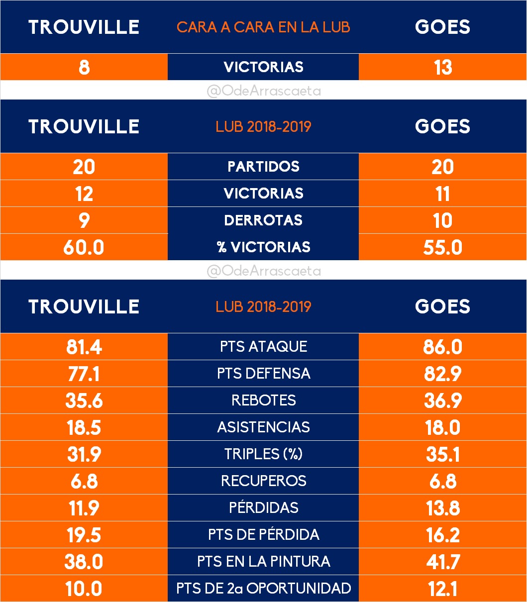Trouville es un equipo que en su cancha se siente cómodo con buenos porcentajes, principalmente con la mano de Donald Robinson y Nicolás Catalá, más algún otro que no es un tirador nato, pero que suma desde el perímetro. Además, Robinson es el hombre gol, y el presente de Paul Harrison que ha ido creciendo con Miguel Ruiz en la pintura, aunque tendrán la difícil tarea de bancar dos internos definidos como Rick Jackson y Jarred Shaw. Ocupar los espacios con jugadores de buena mano de afuera puede ser la solución para los de Álvaro Tito. El goense perdió de la peor manera, en la última bola un encuentro como es el clásico. Debe cargar la tabla con Shaw-Jackson y el propio Borsellino puede ser la clave para la visita. También tiene a Martín Aguilera en gran momento, y Fernando Martínez que ha sido el más regular en lo que va de la temporada, y que por sus características hay que ver, cómo y quién lo defiende en el conjunto local.