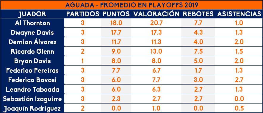 Luego de un partido sumamente cerrado, Aguada consiguió el punto gracias a la gran actuación de Dwayne Davis. Justamente el escolta fue el centro de la denuncia fusionada y de la suspensión, aunque finalmente jugará ya que la pena fue levantada con dinero. Defensor demasiado enfocado en el arbitraje, sufrió la baja de Dawson ya que Johnson no estuvo a la altura. Bryan Davis, con más prácticas encima, podría meterse en el quinteto titular rojiverde donde será baja Demian Álvarez por una fractura en un dedo de la mano.