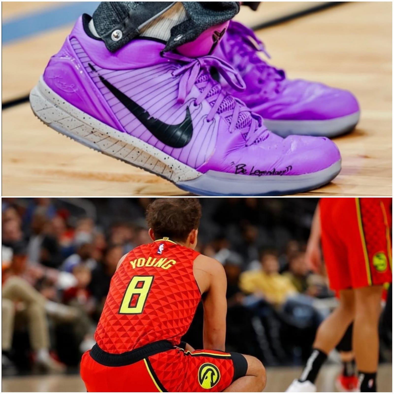 Fue una jornada muy oscura para todo el mundo, sobretodo en la NBA. La muerte de una leyenda como Kobe Bryant sacudió a todos, pero hay algunos a los que les golpeó más que a otros. Unos de esos casos son Kyrie Irving quién alegando causas personales decidió no jugar, otro fue Tyson Chandler (ex compañero de Kobe) pero este le puso el pecho a las balas y se cambió, pero llegado un momento no pudo contener las lágrimas. También estan los casos de DeMar DeRozan y de Trae Young. El primero de ellos calentando previo al partido se sentía devastado. Fue nada más y nada menos que su entrenador Gegg Popovich quién lo consoló. Por su parte el joven Trae saltó a la cancha usando el dorsal número 8 en honor a la leyenda. Para finalizar hablaremos de Devin Booker quien es sus championes se escribió "Be legendary" (sé legendario), ya que eso fue lo que le escribió el astro de los Lakers cuando le firmó unas zapatillas temporadas atrás.