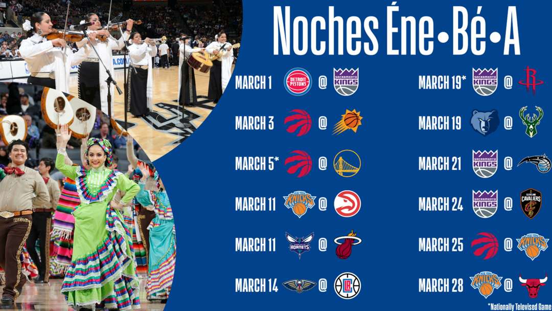 Anoche dio comienzo la tradicional "Noche Latina" en donde se celebra la cultura latina. En la NBA los equipos tendrán en sus camisetas de calentamiento los nombres en español (Los Pistons, por ejemplo). Esto se dará por 15 partidos a lo largo del mes de Marzo comenzando en el duelo entre Sacramento y Detroit de la noche de ayer hasta el juego entre New York y Chicago el 28 del presente mes.