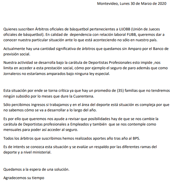Para comenzar, y antes de abordar cualquier otro tema la jueza se refirió a la carta de parte de los jueces hacia el BPS el pasado 30 de marzo, y la cual también adjuntamos: “Esa carta no partió desde la directiva. Si bien aclaro que no estamos en desacuerdo con que se haya hecho y presentado, no es una carta hecha desde la directiva. Si realizada por árbitros que son parte del gremio como la mayoría menos dos de los activos”.