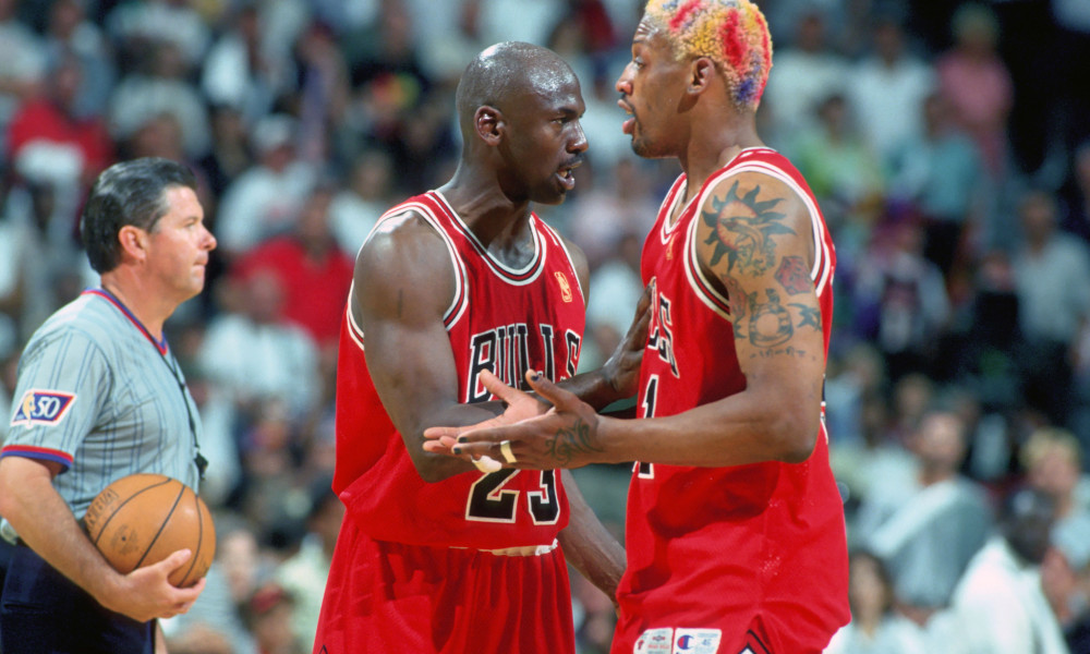 Temporada 1997/98. Con Scottie Pippen lesionado, Dennis Rodman dio un paso adelante como segunda espada de los Bulls detrás de Michael Jordan. En propias palabras de Air Jordan: "Fue un ciudadano ejemplar durante 33 partidos". La locura comenzaría después. Tras el regreso de Pip, el Gusano volvió a su habitual lugar en las sombras (pero no menos importante) y eso lo afectó. Asi que el bueno de Dennis no tuvo mejor idea que pedirle al Maestro Zen, Phil Jackson, una licencia de 48 horas en Las Vegas. El DT y Jordan aceptaron y el ala-pívot tuvo sus merecido descanso. Eso sí, a Rodman se le dio vuelta el reloj y demoró unas 40 horas más en regresar a los entrenamientos, por lo que MJ en persona tuvo que ir a buscarlo a su apartamento frente al Unitad Center, hogar de los Bulls, mientras este dormía con su novia Carmen Electra.