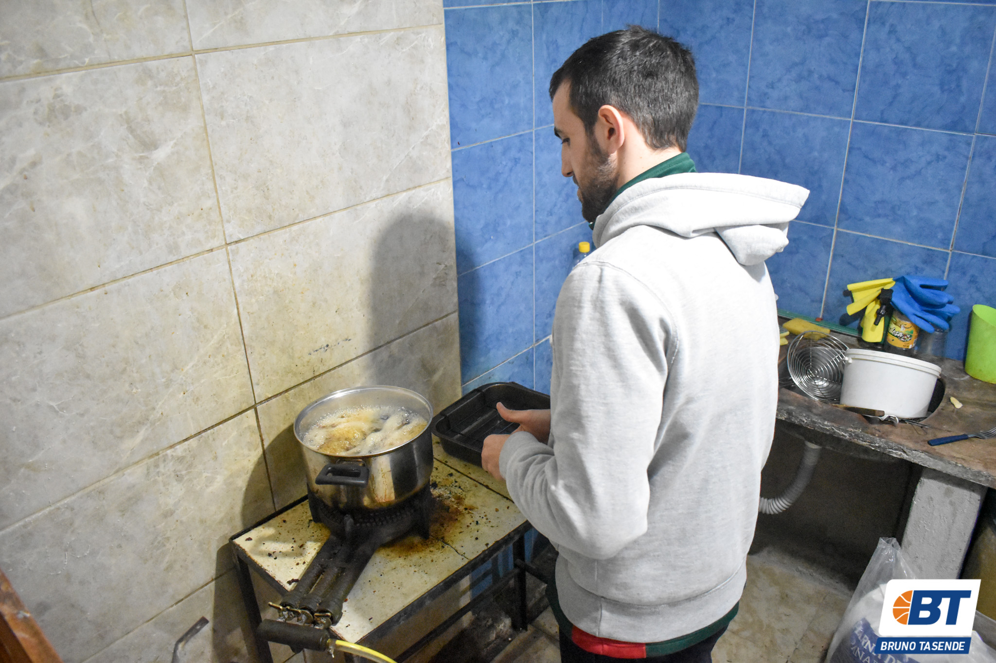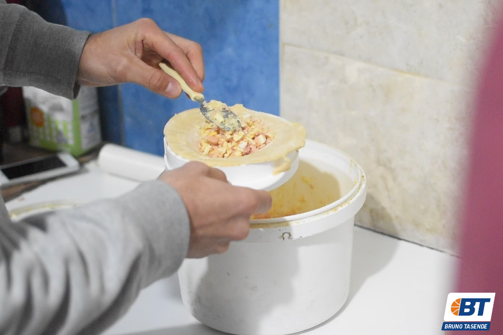 Pero de un tiempo a esta parte el despertador suena a las seis de la mañana. Juan es el segundo en llegar. Una hora antes su padre se viene desde Malvín Norte y arranca a hacer la masa. El jugador de Olimpia la pasa por la máquina de amasar y deja preparadas las tapas, para que luego llegue Federico a rellenarlas, armarlas y fritarlas. Si se necesita, Juan colabora haciendo las de jamón y queso que son más fáciles porque tienen un molde. Por ahora le escapa a las de carne, es bastante gráfico al decir con una sonrisa que “ese repulgue a mano no me sale ni en pedo”.