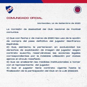 La salida a la luz del arreglo entre Gianfranco Espíndola y Peñarol, trajo un problema en puerta. Nacional ya emitió un comunicado al respecto.