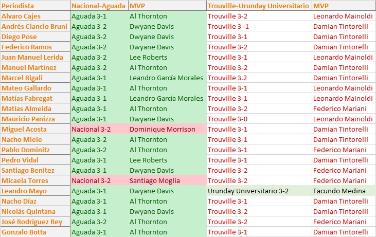 Para nuestro equipo, las dos series están casi que definidias. Sólo dos periodista fueron con Nacional, mientras que uno lo hizo con Urunday, colocando como amplios favoritos a Aguada y Trouville. ¿Será?