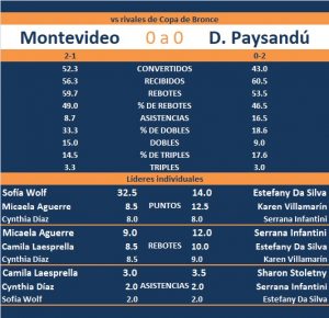 El equipo del Mercado viene de perder ante Aguada la posibilidad de acceder directamente a la final de esta copa, previo a un parate en el cual perdió a su extranjera, Sofía Wolf. Paysandú aún no ha ganado en sus 11 presentaciones. Viene de caer ante Capurro, en la última fecha de la Reclasificación. Sabe que no contará con su capitana Estefany Da Silva, quien será mamá. En la segunda fase se enfrentaron, con triunfo del rojo 66-45.