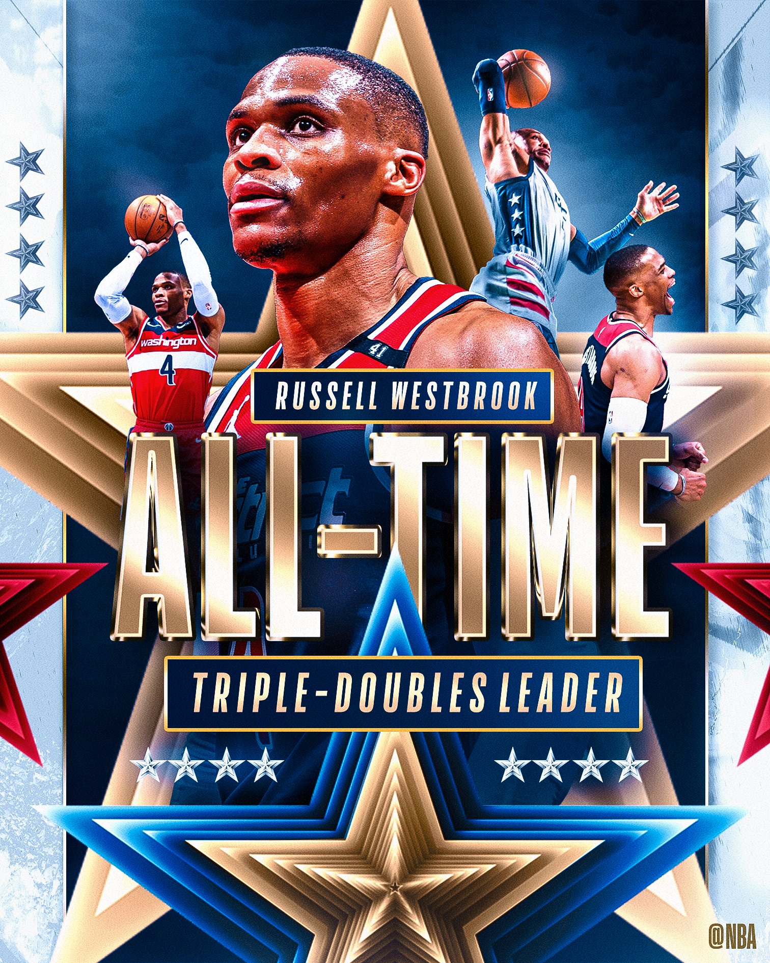 Hoy todos los aplausos se los lleva Russell Westbrook. “Brodie” rompió nada más ni nada menos que el récord de más triple-dobles en la historia de la NBA, que estaba en manos de Oscar Robertson con 181. Lo logrado por Westbrook es una verdadera locura que es digna de ser analizada. El siguiente en esta selecta lista es Magic Johnson con 138 y el siguiente en activo se encuentra en el quinto lugar es LeBron James con 99, la mitad que el base. Ya hace tiempo es conocido como “Mr. MVP”, pero lo de hoy con sus 28 puntos, 13 rebotes y 21 asistencias fue la coronación completa. Puede que no tenga el tan aclamado anillo, pero ya tiene un premio al mejor jugador del 2017, más triple-dobles en una temporada con 42 y ahora esta distinción. Sin duda, un jugador infravalorado en la actualidad, que con el paso de los años se tendrá en consideración todo lo logrado.