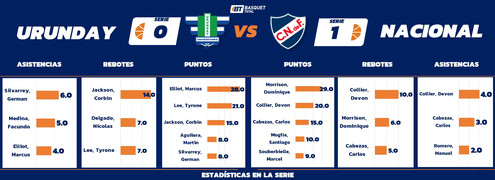 Los tricolores se llevaron el primer juego, pese a no haber contado con Batista ni Mitchell. Para eso, disfrutaron de grandes actuaciones, con Morrison en el rol de goleador y Cabezas aportando 15 decisivos tantos desde la banca. Collier también se destacó batallando en la pintura. Justamente Devon, será baja al igual que los otros pivots. Por El Prado, los extranjeros dieron la talla, mientras que Medina y Silvarrey estuvieron lejos de su nivel. Seguramente no se fueron conformes con el rendimiento ni el resultado. Saben que la chance es hoy, para empatar la serie, porque de lo contrario se pondría muy cuesta arriba.