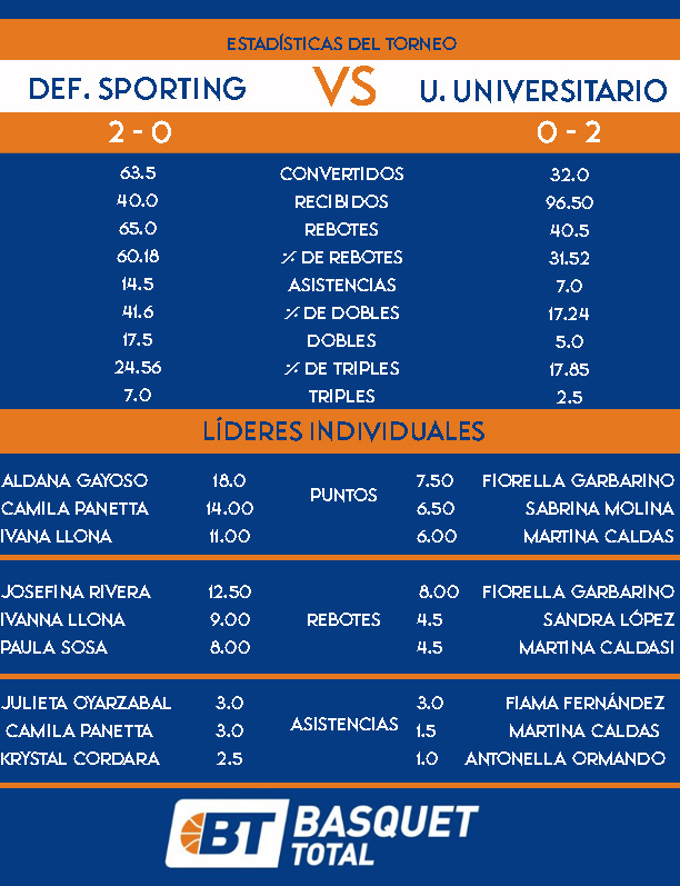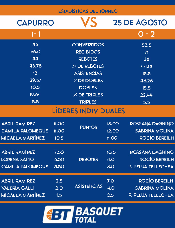 Capurro ha encontrado en la argentina Abril Ramírez una carta más que confiable y en esta segunda participación se ha encargado de comandar a un equipo que cada vez juega mejor. Camila Palomeque en la pintura ha dejado su huella en los encuentros previos y va agigantando su figura debajo del aro.