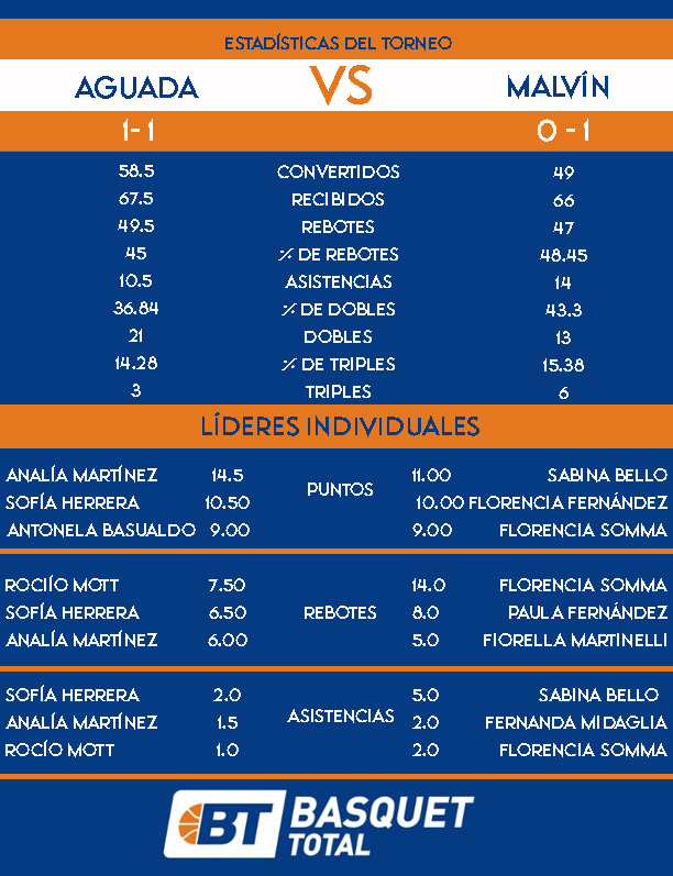Malvín sabe que puede dar y a que juega. Las dirigidas por Juan Pablo Serdio deberán ultimar detalles de pérdidas que cometieron en la primera presentación que tuvieron. Ailen Sosa y Fiorella Martinelli deberán estar finas a la hora de subir el balón teniendo en cuenta la presión defensiva que suele propinar Aguada. Cuando el andamiaje playero entra en calor, Malvín funciona a la perfección de ojos cerrados.