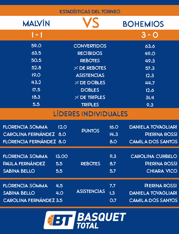 Malvín viene de alcanzar su primer triunfo en el campeonato, pero dejando dudas ante Aguada. Bohemios llega invicto en tres presentaciones. Florencia Fernández y Daniela Tovagliari serán bajas una por bando.