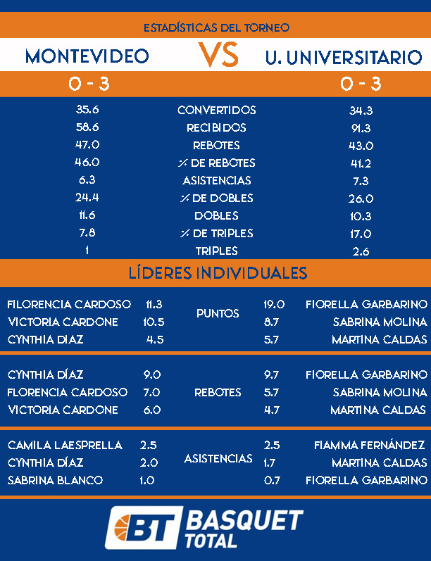 Montevideo puede presionar a un rival que ha sido inseguro en el traslado en sus primeros partidos. En caso de que puedan contar Con Piñeiro, tendrán una base que les agregará seguridad a su traslado, además de otro orden ofensivo. Ante un perimetro chico, postear a Camila Laesprella puede ser una alternativa de gol. Florencia Cardoso viene de un gran juego ante Yale y puede ser desnivelante en el juego. Con un plantel más largo, las rojas pueden castigar con la segunda unidad.