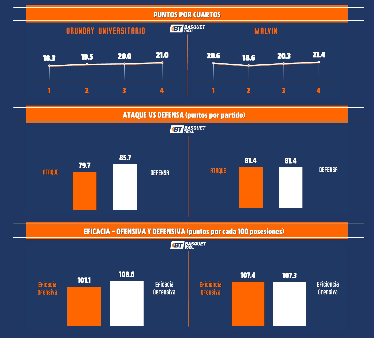 Bajar el ritmo de juego parece ser una clave fundamental de Urunday Universitario, que sabe que si deja correr a Malvin y juega golpe por golpe puede pagarlo muy caro. La conducción de Silvarrey manejando los tiempos, el uno por uno de Fuller, Efianayi rinde en donde el equipo más lo necesita así como Crawford que como hormiga labura y labura. El playero tiene sus herramientas en las transiciones rápidas con Nicola Pomoli siendo clave. Hilliard mostró muy buenos pasajes mientras que Bejarano fue intenso en defensa y en ataque puso bolas fundamentales, Wachsmann no fue influyente, y en el sector defensivo debe dar más.