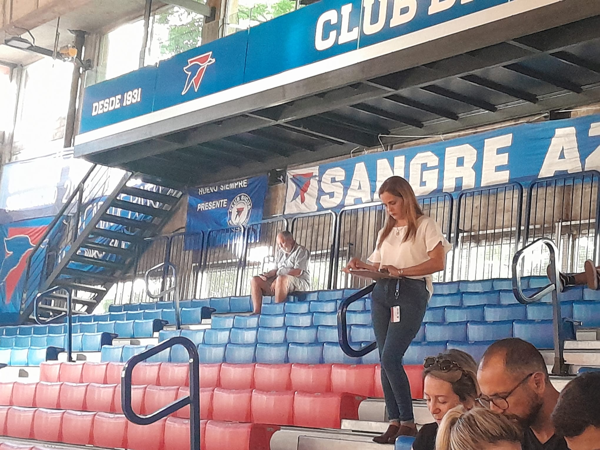 El Club Biguá se caracteriza por atender todos los detalles para que el espectador que va a su gimnasio disfrute del espectáculo. Incluyendo a esta Acomodadora en la tribuna local, quien organizaba el acceso del público a los asientos centrales, y estando muy dispuesta en todo momento para colaborar con la parcialidad locataria.