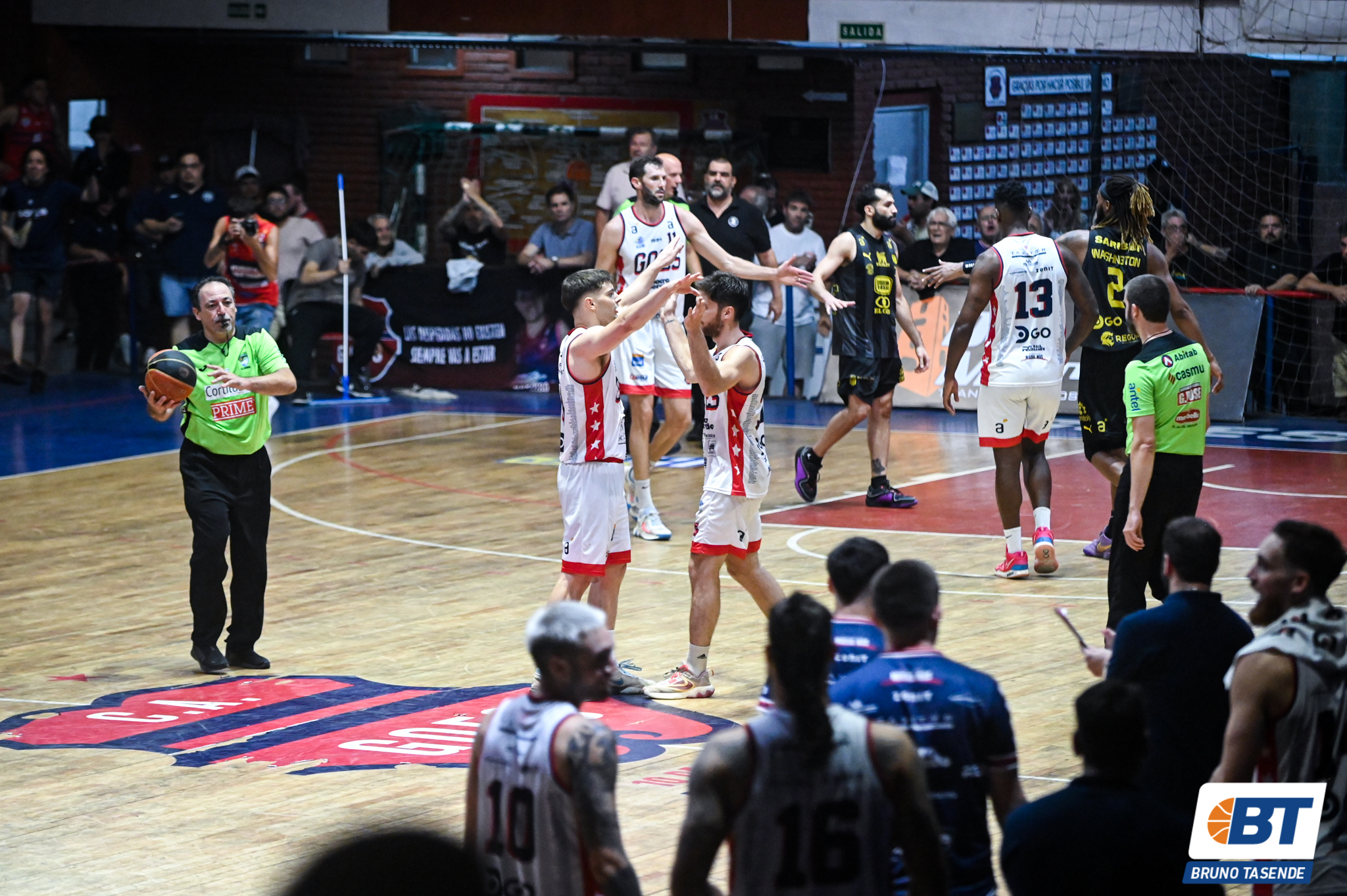 Giano (6): Manejo con calma gran parte del partido y le puso el pienso a las jugadas. Sobre el final le costó un poco las salidas y tuvo algún rezongo por parte del DT. López (7): Tuvo muy buenos pasajes donde él solo cargó al equipo. Sus bombas en momentos claves fueron vitales. Pereira (7): Jugó un partido bárbaro. Siempre las quiso y tiró del carro cuando la mano venía fea. La expulsión la baja un punto porque si bien no afectó el resultado final, estaba siendo uno de los más importantes en el misionero. Nazione (8): Destacado. Mcghee (3): Totalmente a contracorriente. Nunca logró imponerse, tanto en defensa como en ataque, además de tomar tiros que claramente no eran los suyos. Izaguirre (7): Se le caían los papeles de la carpeta que maneja este tipo. Luchó todas las pelotas y en ofensiva se fajó con todos. Nuñez (6): Mucho trabajo invisible, sobre todo en defensa. Sosa (6): No estuvo tan revulsivo como en otros partidos, pero aportó la cuota de frescura suficiente. Arregui (7): Suplente de lujo que tiene el “Colo”. Abajo del aro demostró que es una bestia y si mantiene este nivel, Goes dará pelea hasta el final. Reig (8): Confío a morir en su zona y controló bien a su rival, al punto de malhumorarlo. Triunfazo no solo que vale hoy, sino para lo que se viene.