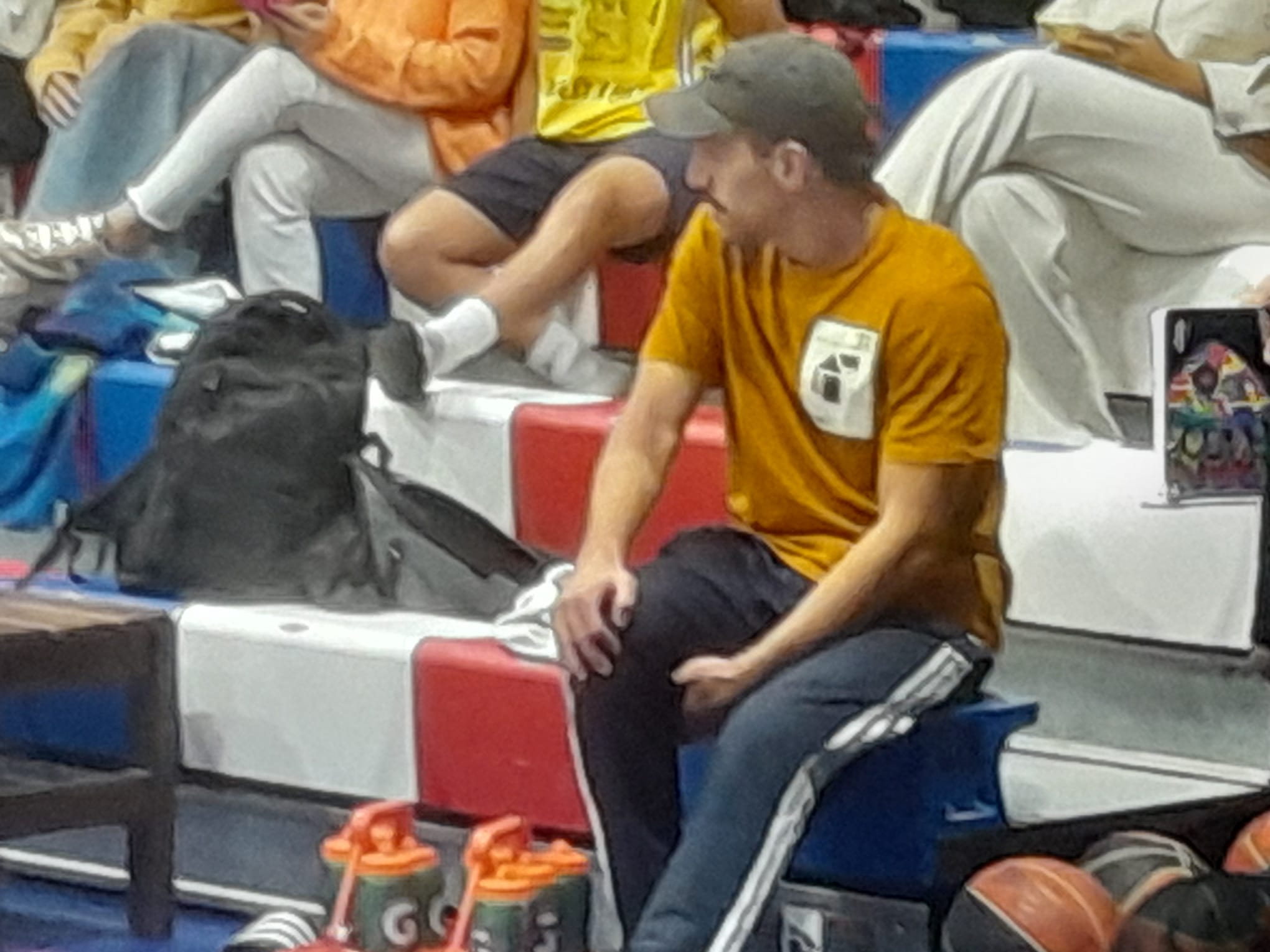 En el banco de Hebraica vimos al base Manuel Romero junto a sus compañeros, tras la operación por rotura de ligamento cruzado en su lesión de hace un par de meses frente a Flamengo. Si bien se le notaba la dificultad al caminar, e incluso con algún gesto de dolor, alentó y festejó el triunfo en una LUB que no volverá a jugar por esta temporada.