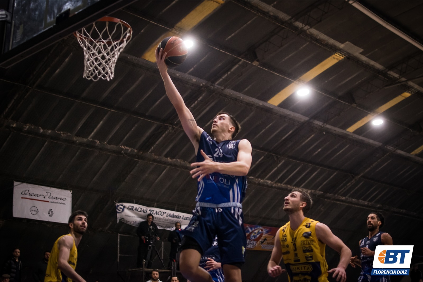 Los locales seguían fuertes con buenos rompimientos y descargas, también encontraron y anotaron varios triples abiertos, Copelotti tuvo un gran pasaje. El azul planteó una zona, tuvo algunos problemas con el rebote y contener las penetraciones, no terminó siendo una variante muy efectiva, pero en ataque estuvieron finísimos de tres puntos y abrieron diecinueve de ventaja para cerrar el cuarto 44-25.