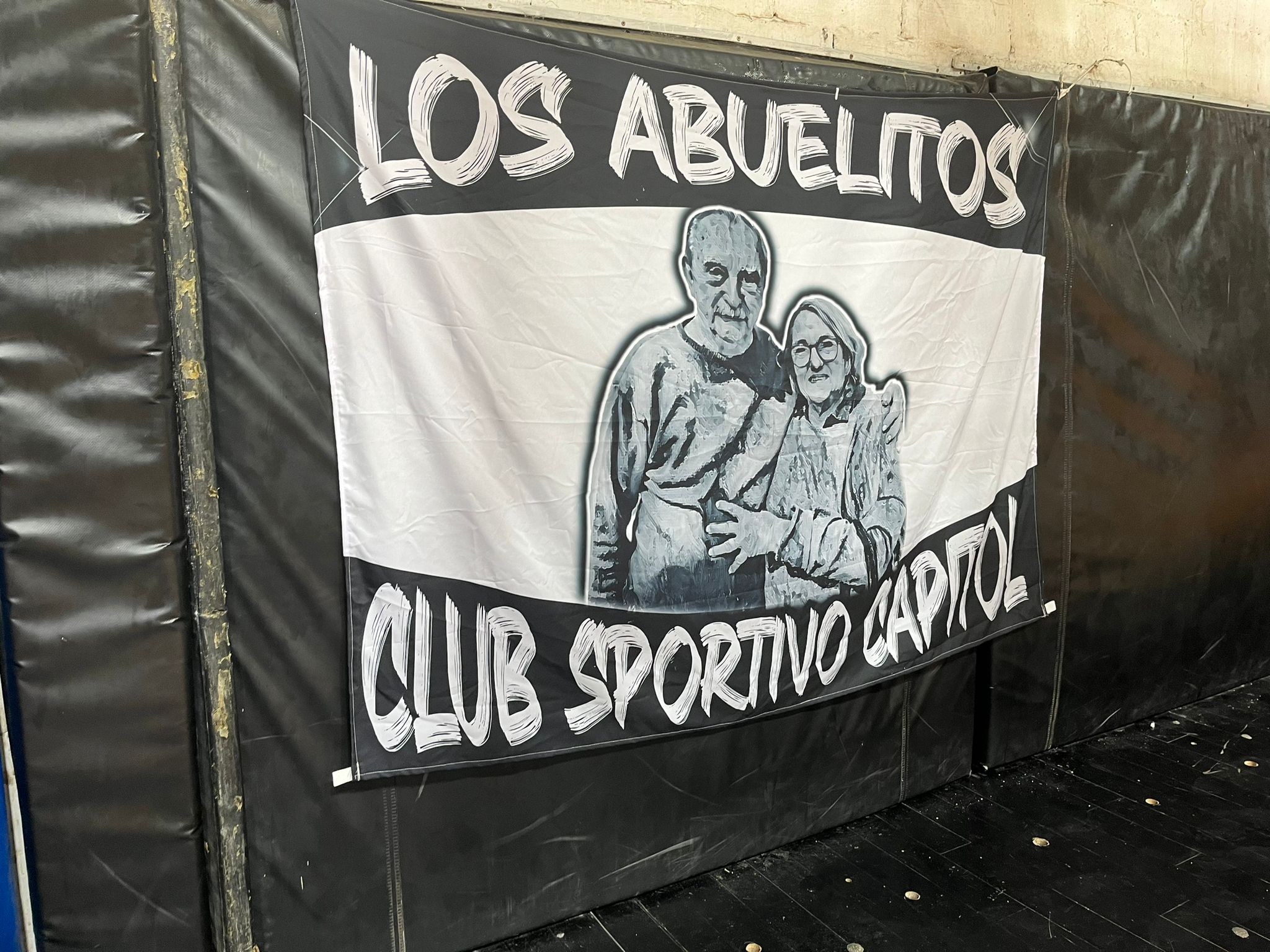 En la noche del Prado, homenaje al capitán del local. Juan Wenzel con una bandera y además también otra bandera. Para unos abuelos, el hombre fallecido y la mujer presente pareja del mismo. Idénticos en la bandera. Momento de emociones varias en el escenario del Capi
