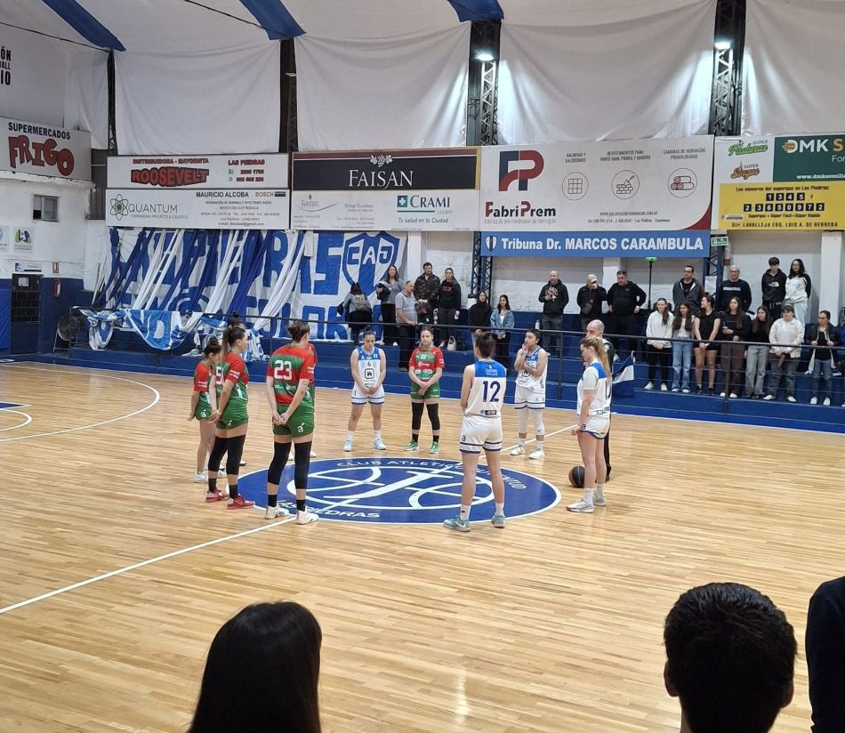 El conjunto de Hernán Balda debía encontrar otros argumentos para emparejar el marcador, con ventaja para el local que tenía mayor fluidez, mejor funcionamiento ofensivo y porcentajes de campo. Pero sus quintetos integrados en cancha tenían dificultades para superar la energía de marca eficiente de las pedrenses: la referencia constante sobre Bacchini limitó su poderío en el poste bajo: en este rubro cayó en el primer tiempo por 22 a 8, dejando muy sola a Agustina García, quien se puso el cuadro al hombro, aunque resultaba insuficiente su esfuerzo en las penetraciones. De todos modos, obligó a recibir varias faltas y su buena mano desde el libre, superior al 80%, la convirtieron en goleadora del aguatero. Sin embargo, no fue suficiente, para evitar que las azules sacaran máxima de 15, 43 a 28, al final del primer tiempo, de forma justificada.